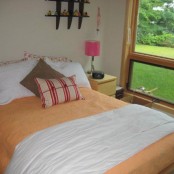 寝室は優しいオレンジ色のベッドカバーなんだ…何だか心温まるね。