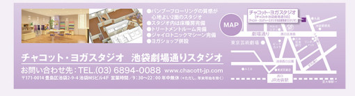 池袋 チャコットヨガスタジオ にてレッスンスタートします。